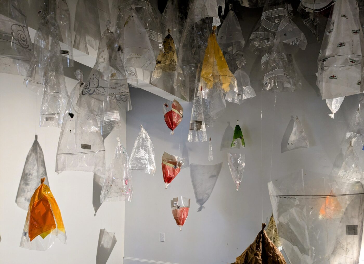 The museum has since created a memorial room within the existing galleries and is committed to having rotating objects on display within that room. Maine MILL is also taking oral histories of those that were directly impacted and of our community leaders. The one-year commemoration exhibit was created by two local artists, Tanja Hollander and Miia Zellner, using all 261 plastic flower sleeves saved from Just-in-Time Recreation and Schemengee’s Bar and Grille. The work was on view October 16, 2024 – September 13, 2025 . Through the medium of reclaimed plastic flower sleeves, the work explored loss, the role of impermanent expressions, and the impetus behind shared community recovery from the effects of mass violence.