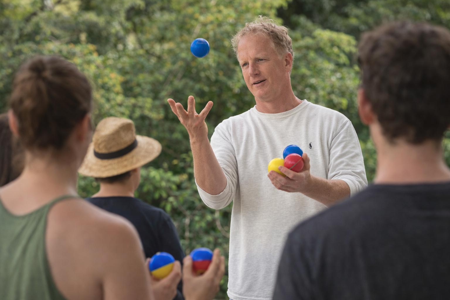 Michael Menes is a Maine based professional juggler with 50 years of experience. Learn the basics of several types of juggling including a basic cascade pattern and other forms of therapeutic juggling like Chinese medicinal palm rolling. You will leave with a new understanding of how objects of different shapes, sizes and weights lead to different movement potentials and vocabularies. Beginners are welcome.